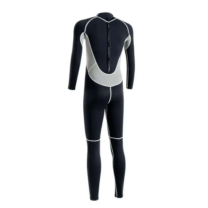 Heavy-duty YKK front and rear zipper wetsuit is easy to get in and out of.